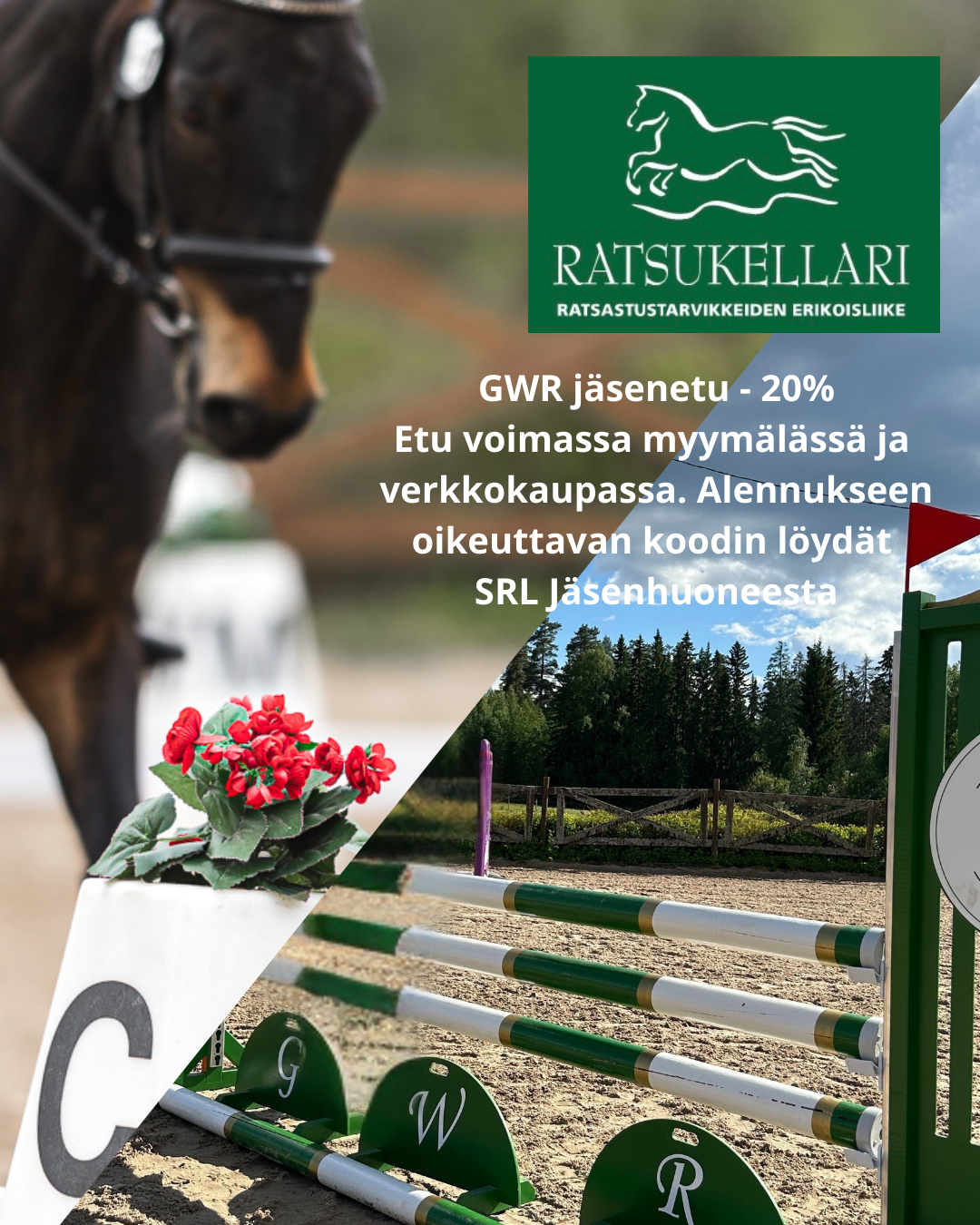 Goodwill Riders ry:n jäsenet saavat -20% alennuksen Ratsukellarin myymälästä sekä verkkokaupasta. Alennukseen oikeuttavan koodin löydät kirjautumalla SRL Jäsenhuoneeseen.