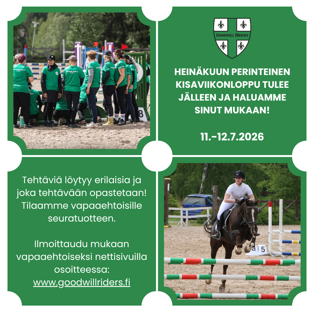 Tule mukaan talkoilemaan Vahantaan lauantaina 18.4.2026 klo 12.00 --> Laitetaan ratsutilan tontti yhteistuumin kisakuntoon ulkokautta varten! GWR tarjoaa talkoilijoille pizzaa ja virvokkeita, joten…